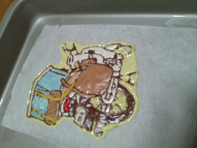 お友達のブロガーさんが、今旅をしながら日本を走り回っていて、10,000kmに達したという事もあり、其れをネタに、チョコレートで作ったバイクプレートを乗っけたケーキを作ってみました♪(「・ω・)「